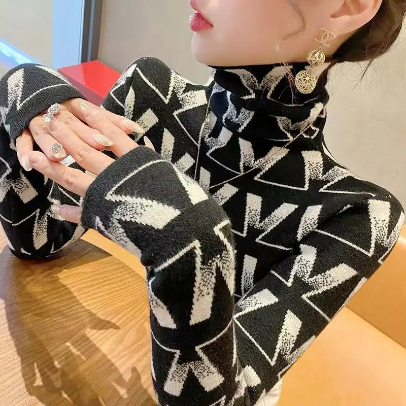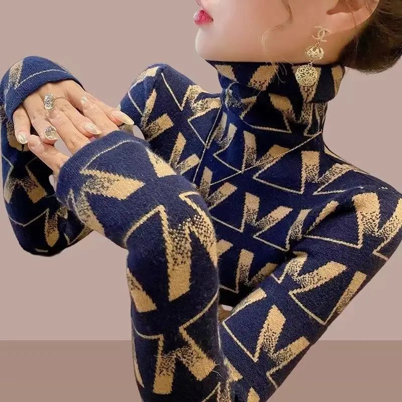 The Geometry Knitted Turtleneck Sweater is expertly crafted for women aged 35-45, blending style and function for autumn and winter wear. Made from a durable acetate and polyester blend, this slim-fit sweater features a medium-weight knit fabric (120–220 g/m²) that provides balanced warmth and comfort. Its geometric A-straight pattern adds visual interest without overwhelming, while the turtleneck collar offers additional coverage and insulation. With full-length sleeves and no closure or decoration, the design prioritizes simplicity and elegance. The medium stretch fabric ensures ease of movement, making it ideal for casual, everyday wear during cooler seasons. Available in five sizes (S to XXL) with lengths ranging from 82 cm to 98 cm, it delivers a tailored fit without compromising comfort. This sweater’s craftsmanship avoids high-concern chemicals, aligning with health-conscious choices.