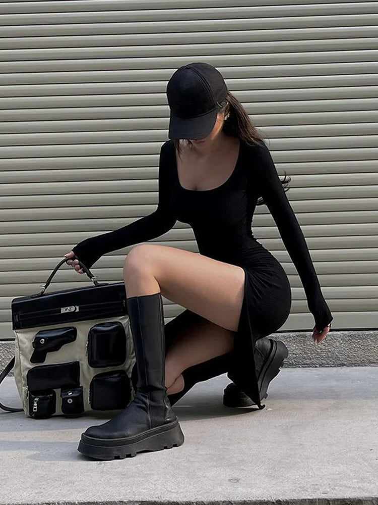 This Long Sleeve Midi Dress combines timeless elegance with comfortable wearability, designed specifically for juniors with a slim, sheath silhouette that flatters the figure. Crafted from a polyester-spandex blend with medium stretch rib knit fabric, it ensures a smooth fit and ease of movement. The square neckline and empire waistline enhance its sophisticated look, while the pullover closure allows effortless dressing. Suitable for all seasons, this mid-calf length dress offers versatile style with full-length sleeves in a solid color, making it a refined choice for high-street fashion and everyday wear.