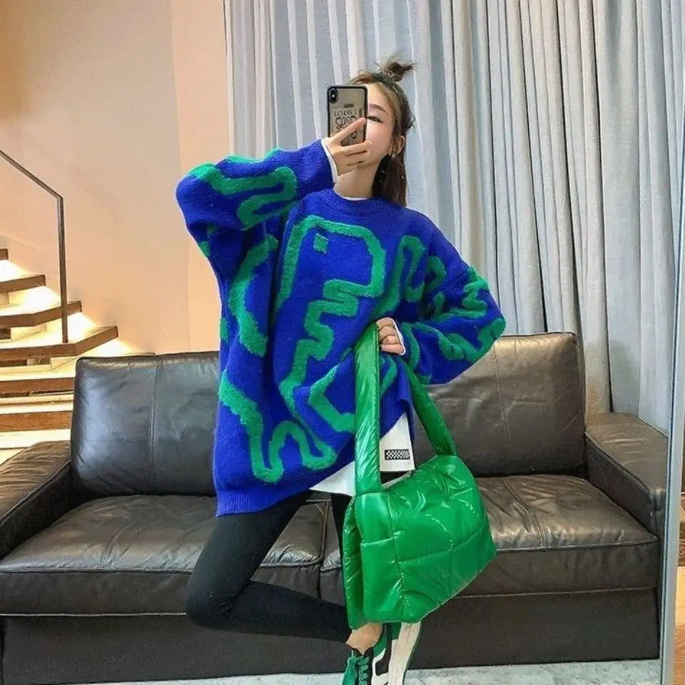 The Loose O-neck Fuzzy Sweater from KOROBOV is crafted for women aged 18-24 seeking comfort and style for the autumn and winter seasons. Made primarily of acrylic polyester with slight stretch, this knit pullover features a classic O-neck and full-length sleeves that provide a regular fit suitable for office and casual wear. Its A-straight cartoon pattern adds a subtle touch of personality without overwhelming your outfit. Designed with standard yarn thickness and no heavy chemical treatments, this sweater ensures softness and durability while maintaining breathable warmth. An excellent choice for layering in cooler weather.